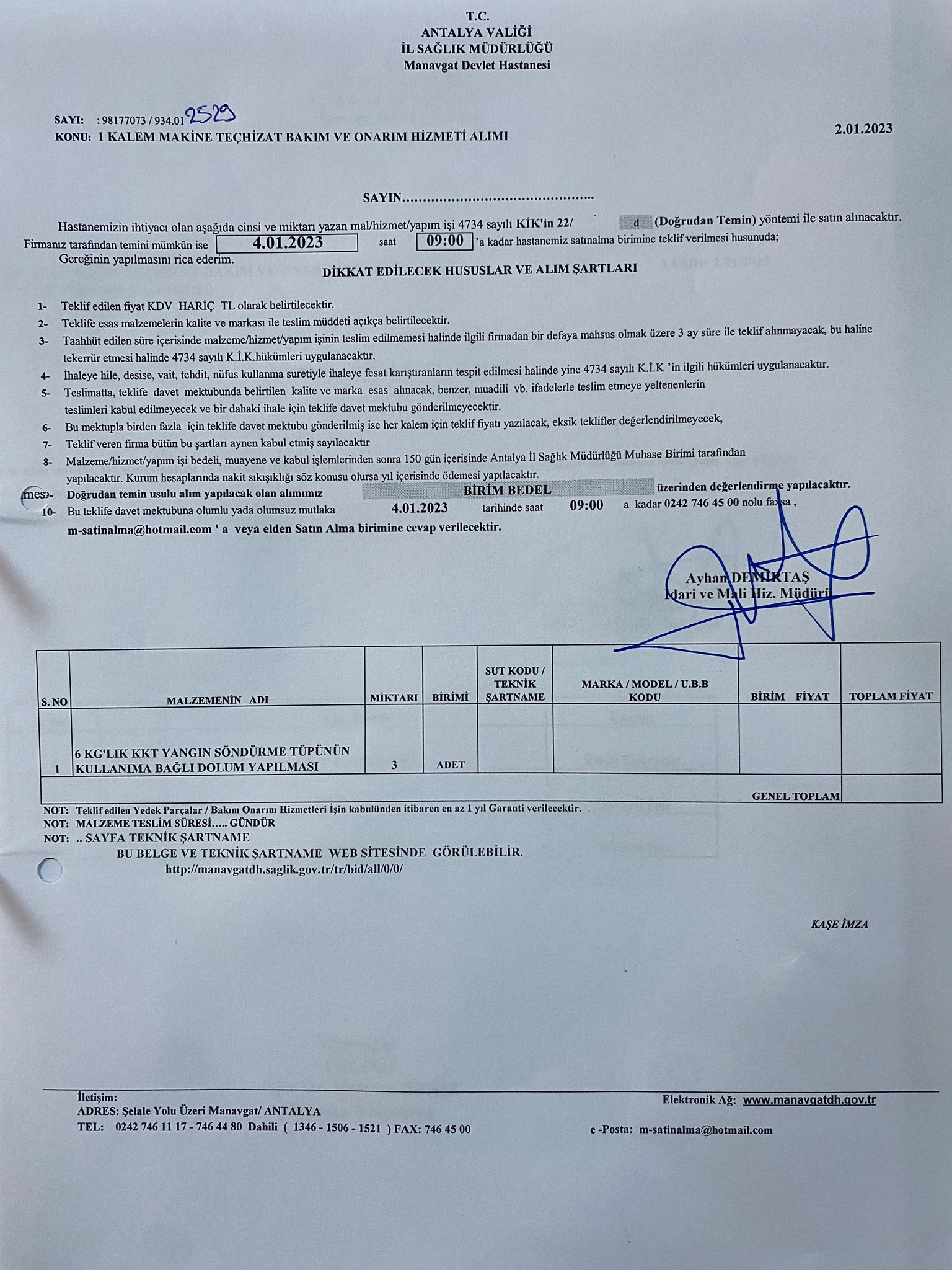 | İhale Kurumu | : | Antalya Manavgat Devlet Hastanesi |