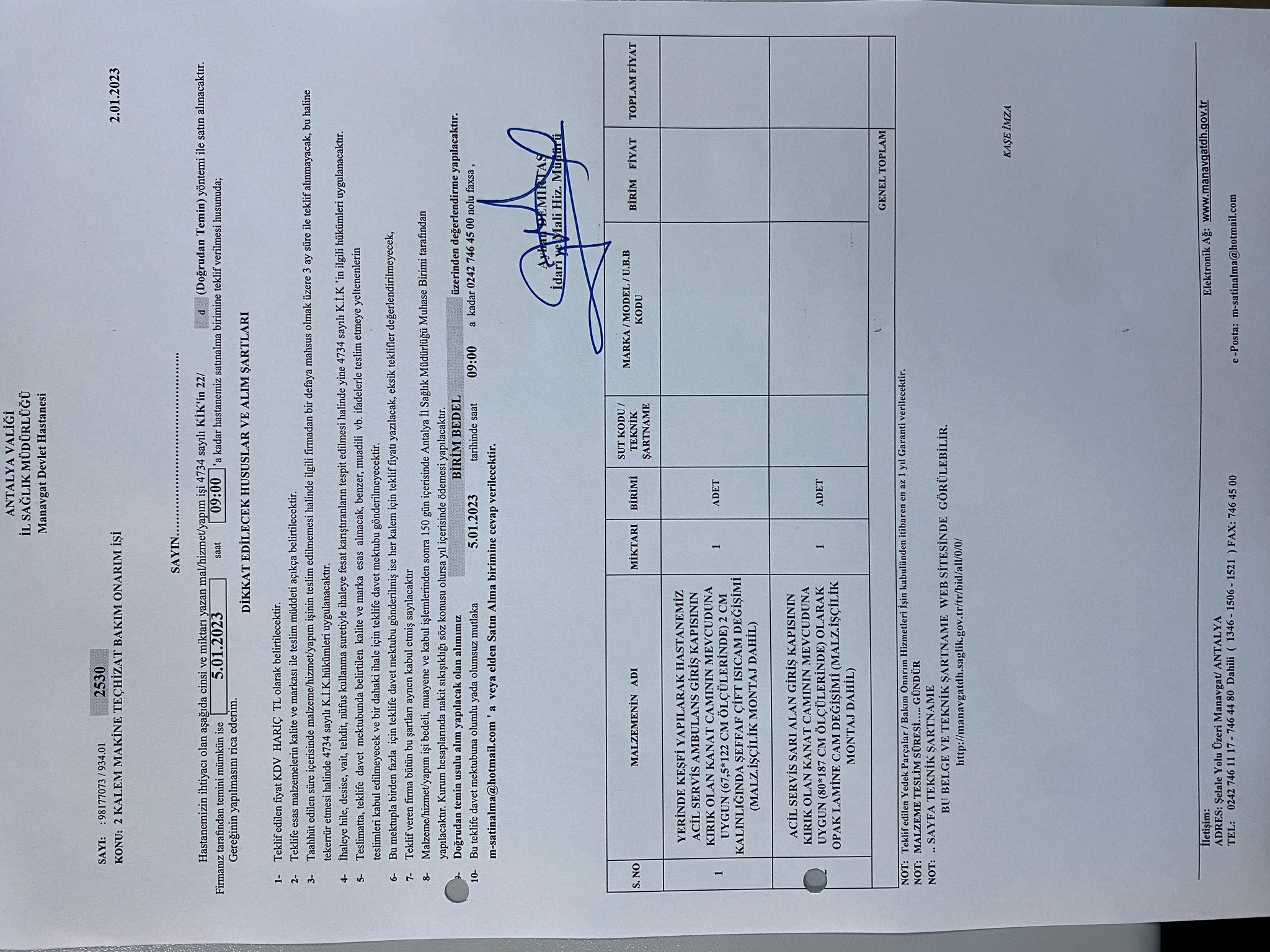 | İhale Kurumu | : | Antalya Manavgat Devlet Hastanesi |
