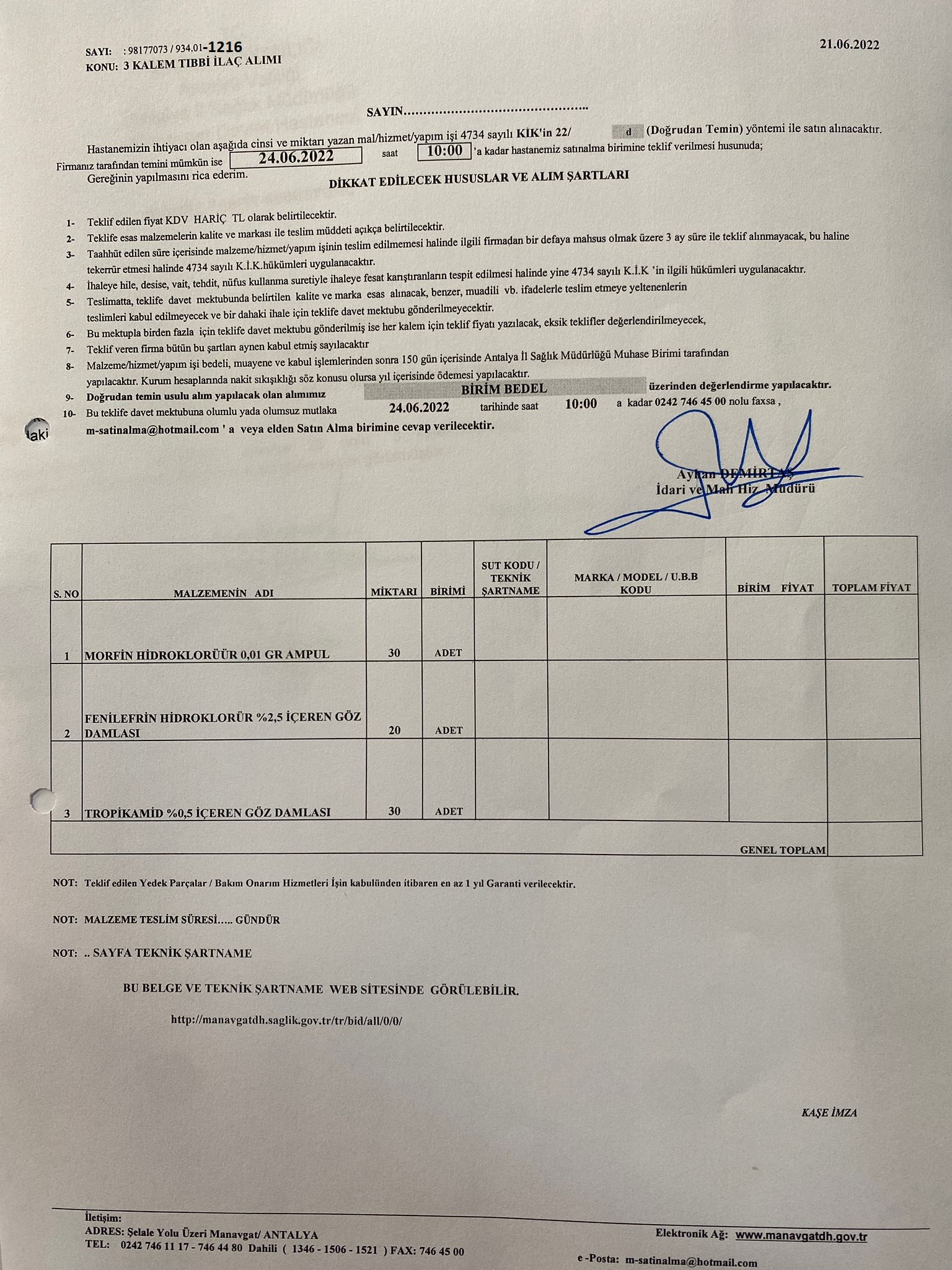 | İhale Kurumu | : | Antalya Manavgat Devlet Hastanesi |