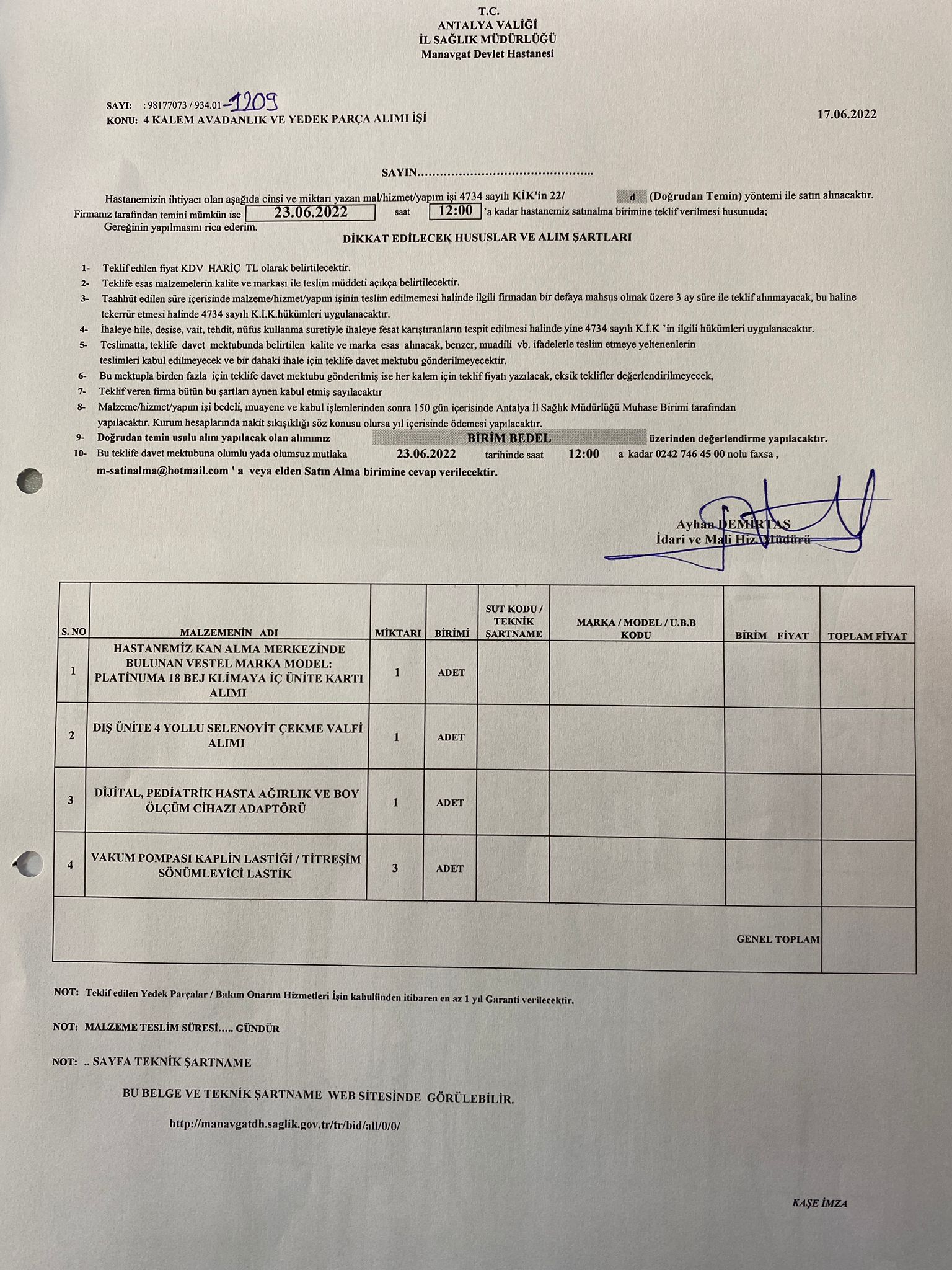 | İhale Kurumu | : | Antalya Manavgat Devlet Hastanesi |