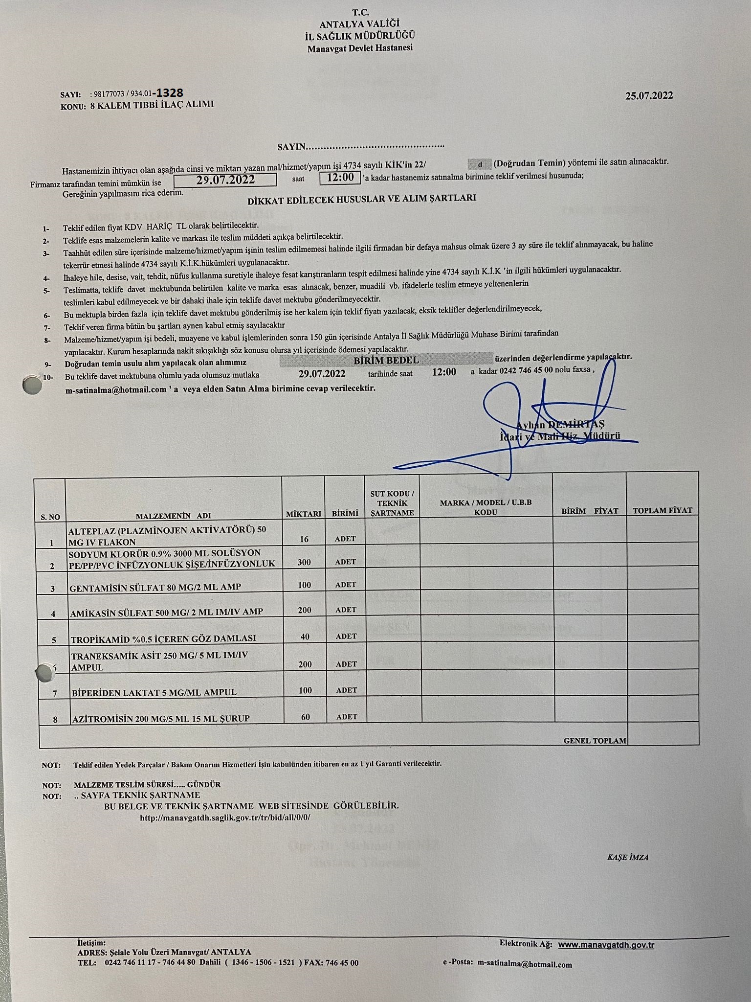 | İhale Kurumu | : | Antalya Manavgat Devlet Hastanesi |